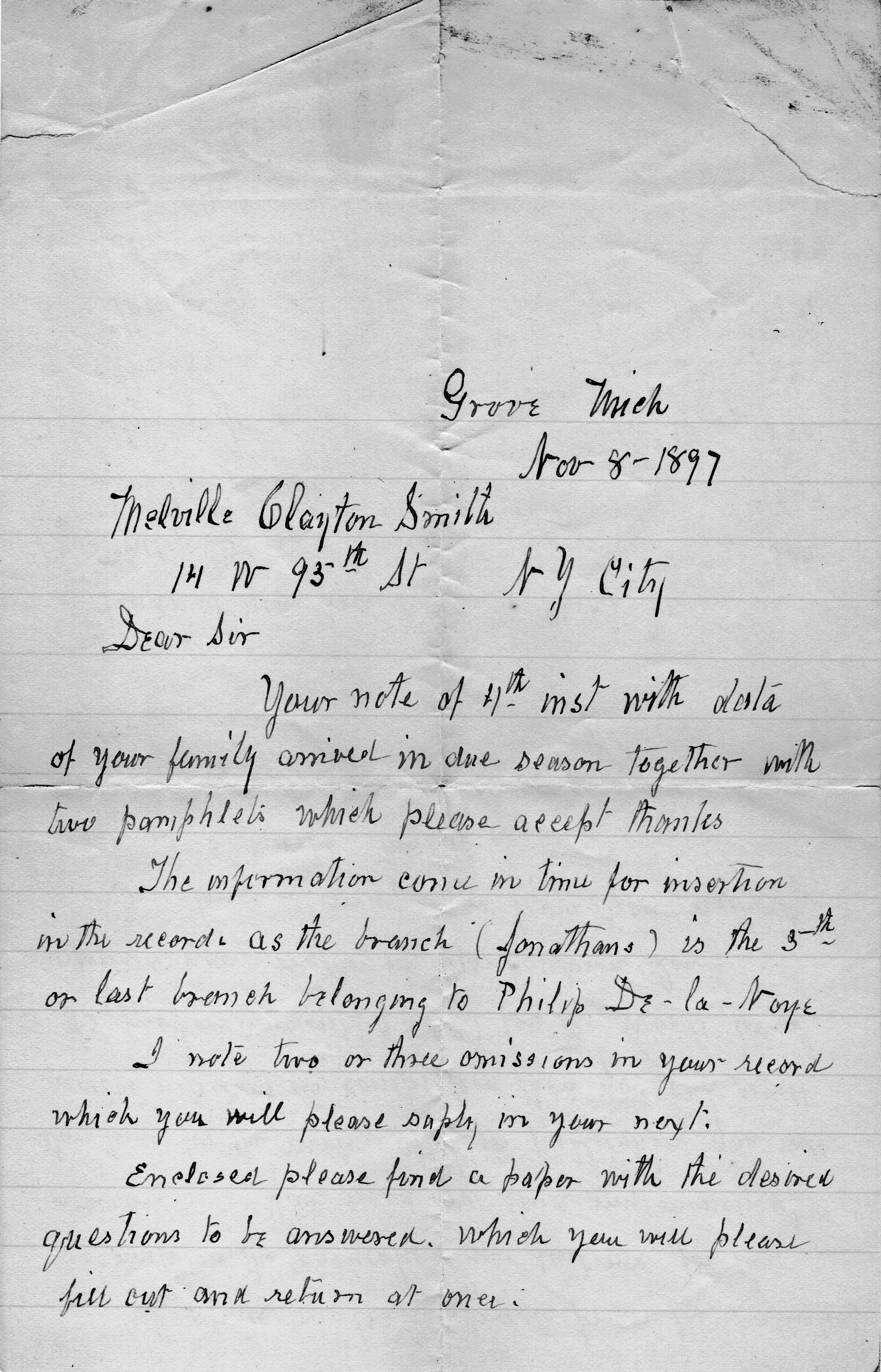 | Attachment | Melville Smith GHAAHD Letter, Page 1 | This is page 1 of a 2-page letter written in 1897 by Major Joel Andrew Delano to Melville Clayton Sm | View |